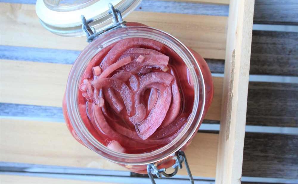 Pour the vinegar mix over the onions to cover completely then seal the lid. Place in the fridge. Your pickles will be ready in 12-24 hours but are now essentially preserved so will last up to a few months in the fridge.